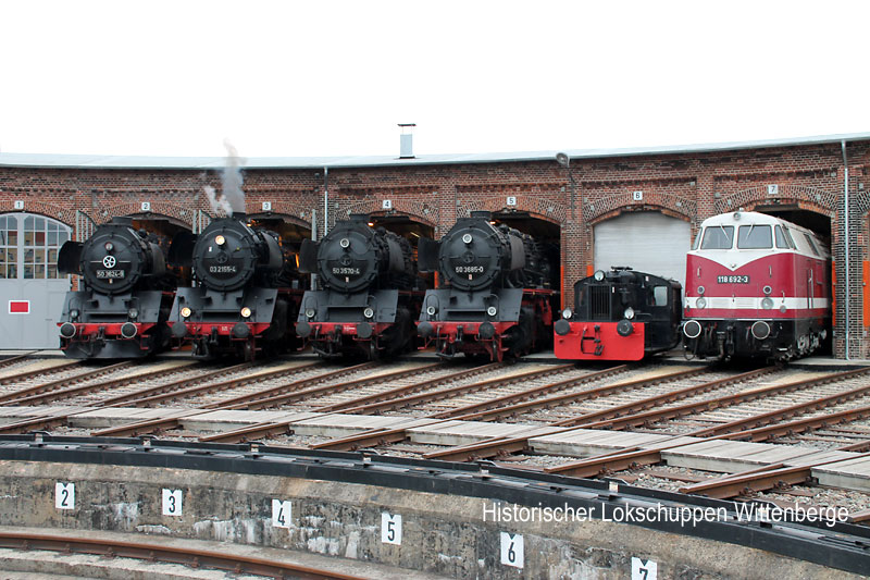 Am 18. August 2013 besuchte uns erneut die Schnellzugdampflok 03 2155-4, diesmal mit einem Sonderzug aus Lübeck. Hier gibt sie sich ein Stelldichein mit ihren Reko-Schwestern der BR 50.35.