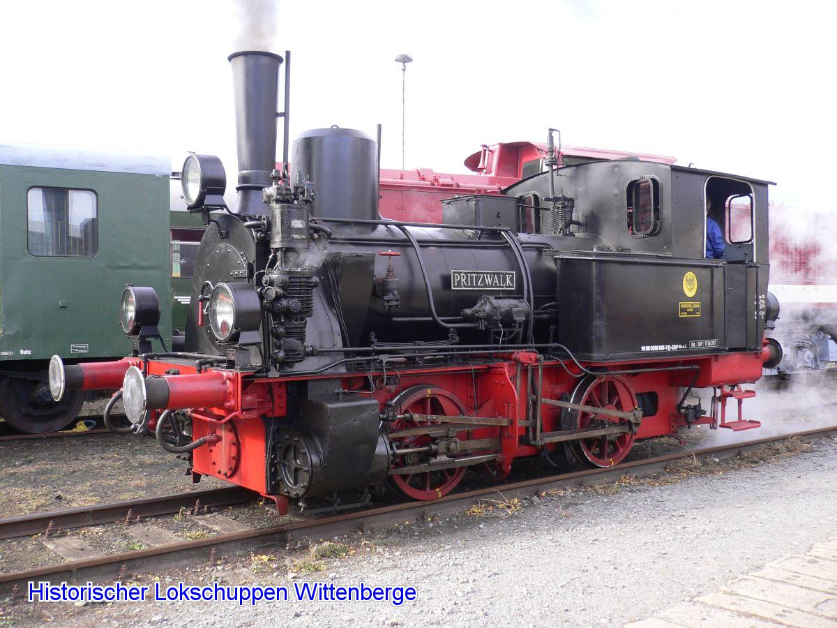 ![]() Zur Jubiläumsveranstaltung am 12. und 13.10.2019 war die Dampflok "Pritzwalk" in Wittenberge zu Gast. Sie wurde bereits am 23.09.2019 per Tieflader aus Meyenburg angeliefert und stand auch für Führerstandsmitfahrten zur Verfügung. |
