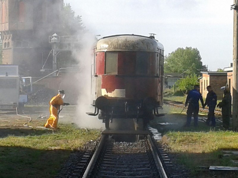Am 29.05.2015 wurde der Beiwagen 197 805-5 von den Aktiven des Vereins gesandstrahlt und anschließend grundiert.