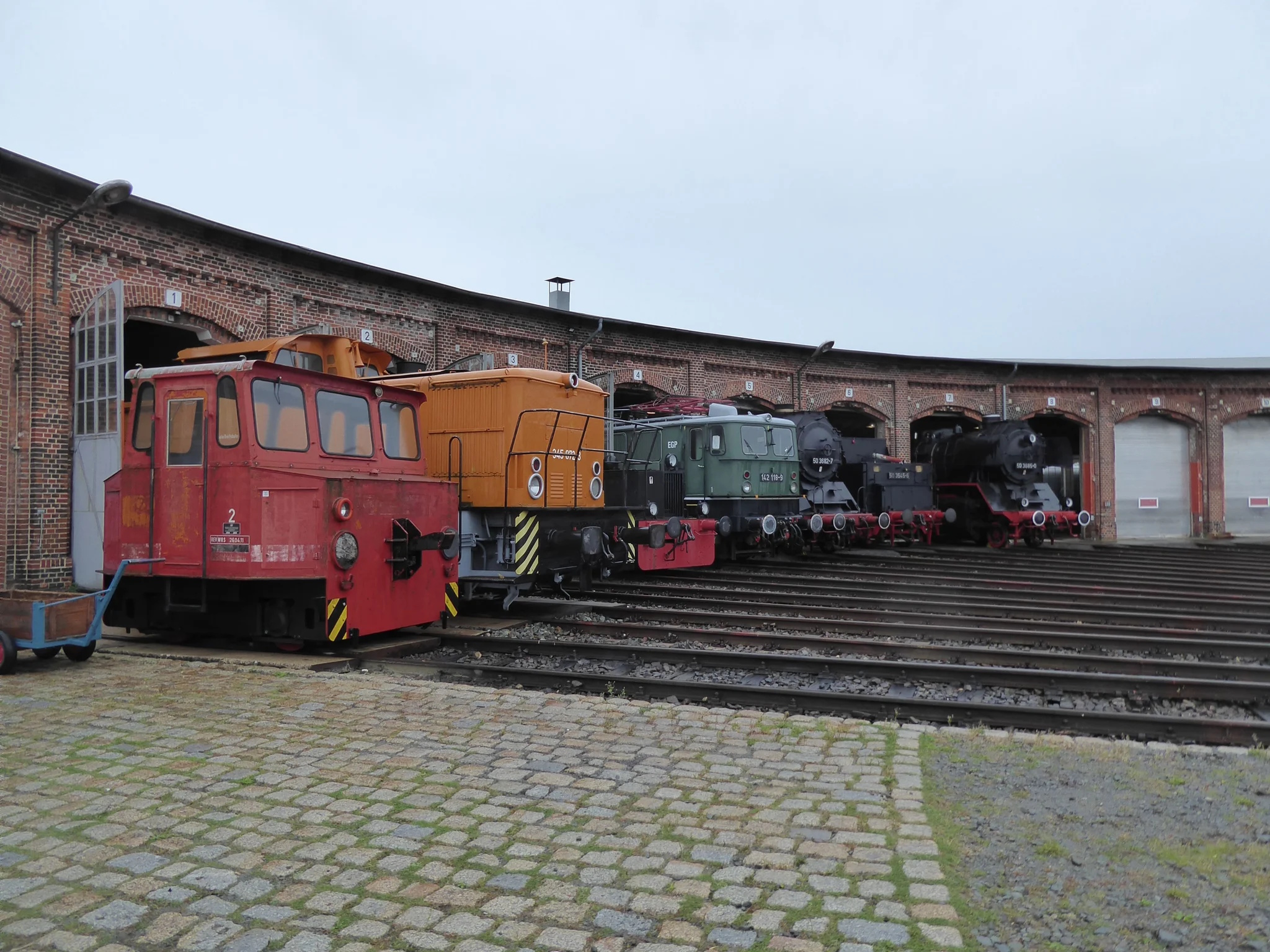 Die Loks stehen aufgereiht im großen Ringlokschuppen. (Foto: Caroline Hähnel)