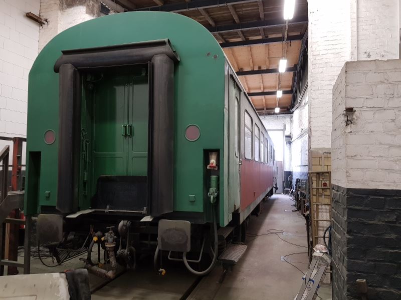 Der Maschinenwagen befindet sich gerade zur Neulackierung in unserer Arbeitshalle. Gerade wird er neu grundiert und wir hoffen auch für ihn auf demnächst steigende Temperaturen, damit wir den Lack auftragen können.