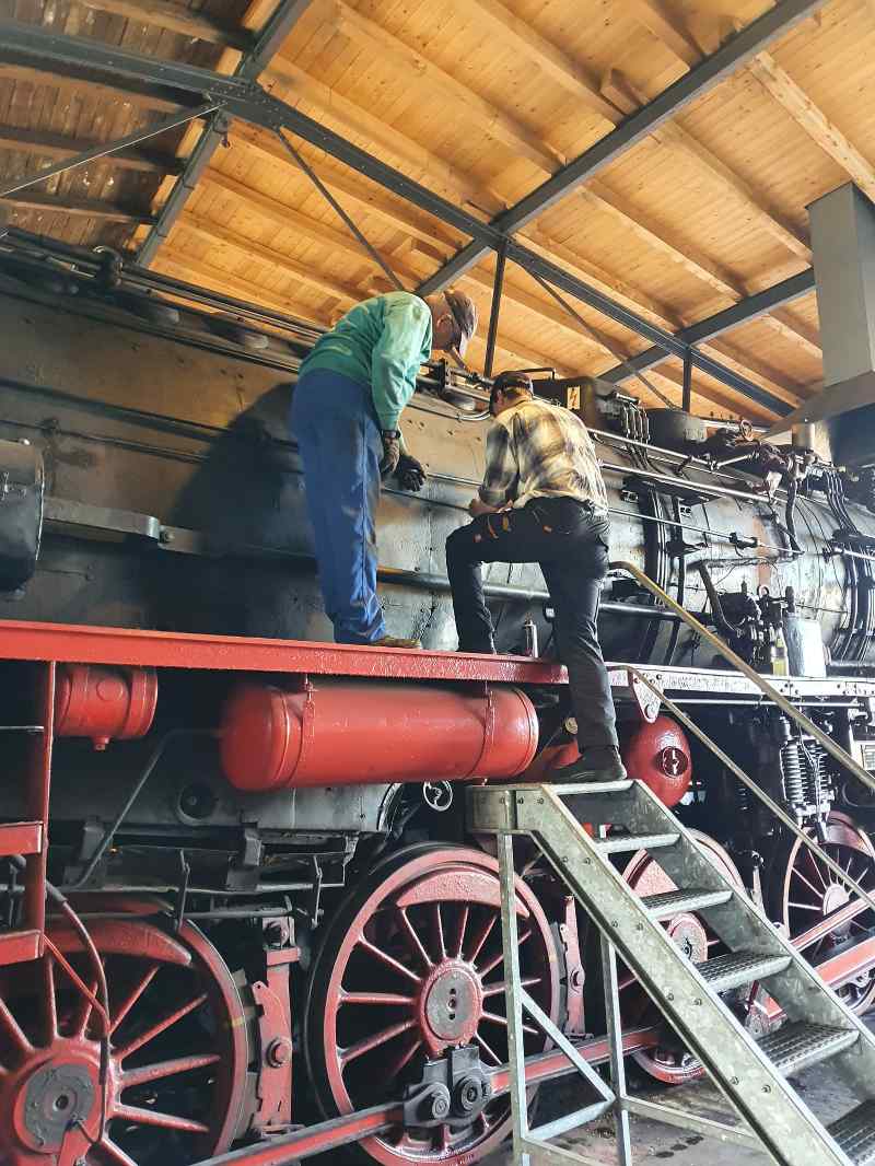 Nachdem sich alle von dem doch recht anstrengenden letzten Wochenende mit unserer ersten großen Veranstaltung in diesem Jahr erholten, machten sich einige bereits wieder ans Aufräumen. So wurden unsere Dampfloks 50 3570, Emma und Pritzwalk ausgeschlackt und mit neuen Vorräten befüllt.