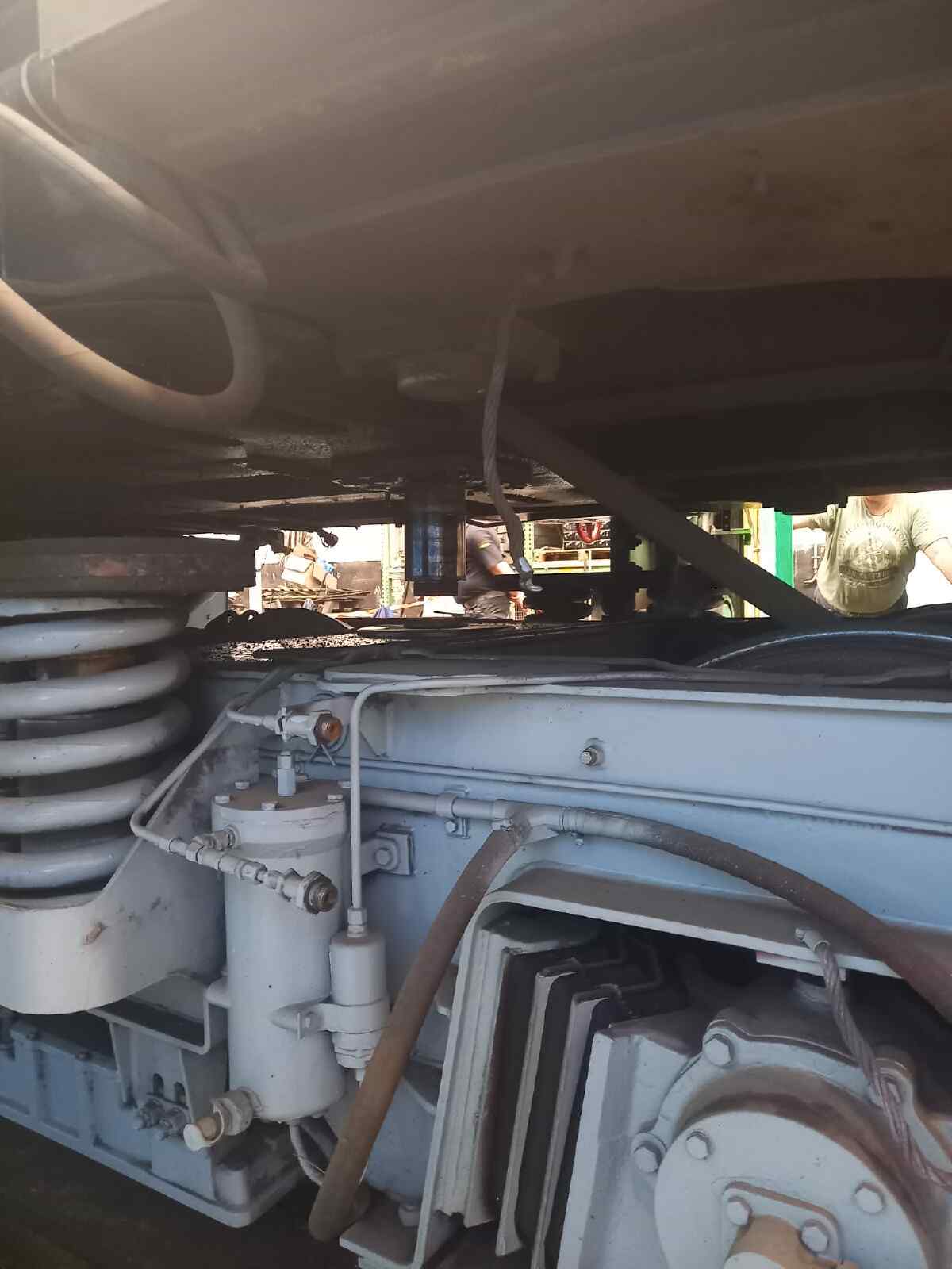 Am vergangenen Samstag wurde ein weiterer großer Schritt bei der Hauptuntersuchung unserer Diesellok 114 774 geschafft. Nachdem nun alle Arbeiten am Fahrwerk und am Rahmen der Lokomotive abgeschlossen wurden, konnte die Lokomotive wieder auf ihre „eigenen Füße“ gestellt werden. Das bedeutete für die Aktiven, dass sie die Lok wieder auf ihre Drehgestelle und damit auf ihre eigenen Achsen stellen mussten. Das war ein spannender Moment und Millimeterarbeit, hat aber zur großen Erleichterung der Beteiligten gut geklappt. Natürlich haben wir bei dieser Aktion auch ein paar Fotos aufgenommen, die wir Ihnen nicht vorenthalten möchten.