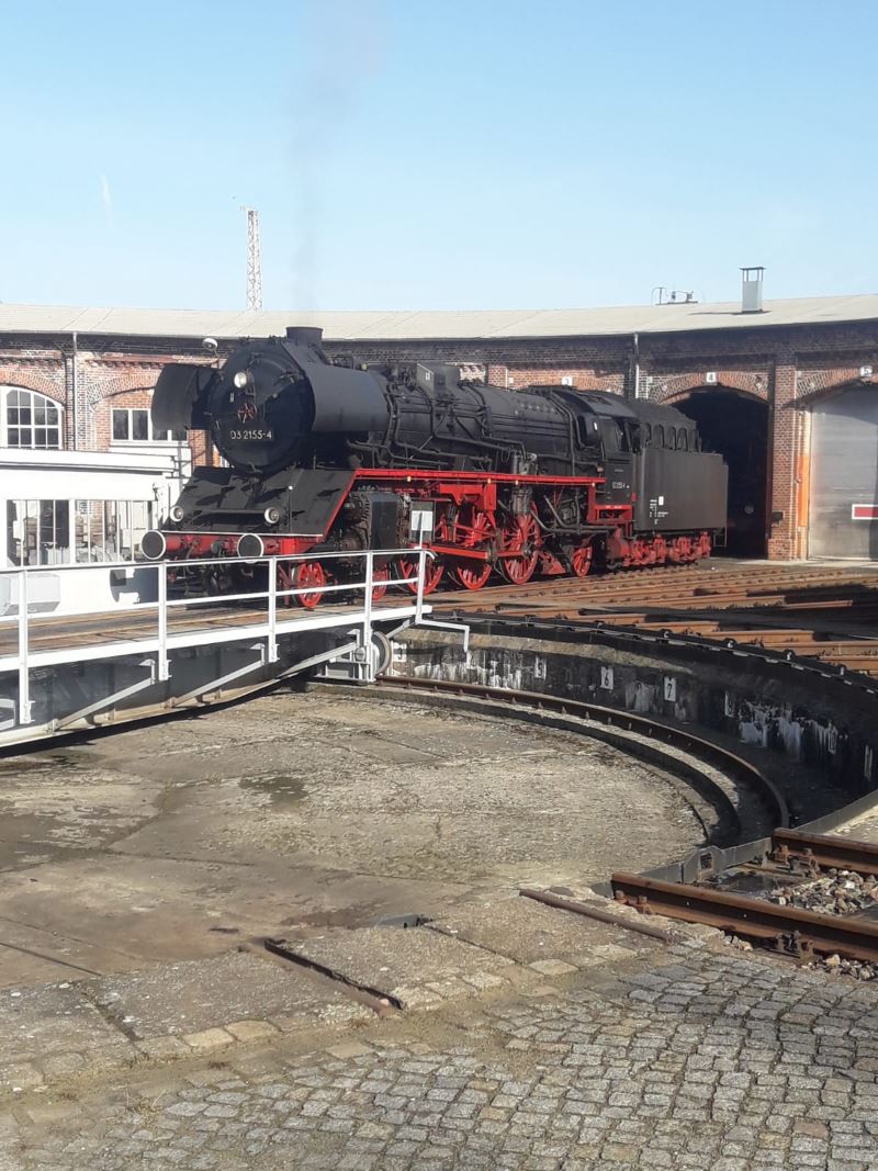 In den vergangenen Tagen haben zwei Dampflokomotiven Halt in Wittenberge gemacht, um Kohle und Wasser nachzubunkern und um einige Tage einige historische Reisezugwagen abzustellen, die zwischen zwei Sonderfahrten nicht gebraucht wurden. Am Montag, den 25.2. erschien die Dampflok 03 2155 der Firma WFL auf dem Gelände des Historischen Lokschuppens, ergänzte ihre Wasservorräte und verließ nach rund drei Stunden wieder den Hof, um weiter Richtung Berlin zu dampfen. Dabei ließ sie drei Reisezugwagen der Gattung Bghw hier stehen, die am 2.3. für eine Fahrt von Hamburg nach Wernigerode gebraucht wurden. Diese Wagen wurden am 1.3. von 35 1097 unserer Kollegen aus Glauchau abgeholt, die ihren Leerreisezug nach Hamburg gemeinsam mit der Diesellok 118 770 bespannte.