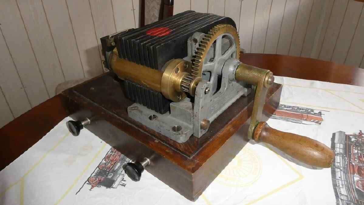 Er begann im Jahr 1984, Läutewerke der Eisenbahn zu sammeln. Dabei handelt es sich um Apparaturen zur Zugmeldung von einer Betriebsstelle einer Eisenbahn zur anderen, also sagen wir von einem Bahnhof zum nächsten und allen dazwischen liegenden Betriebsstellen, wie zum Beispiel Schrankenwärtern. Sie alle mussten informiert werden, wenn im angrenzenden Bahnhof ein Zug in ihre Richtung losfuhr. Und das geschah mittels Tonsignalen in Form von Glockenschlägen. Wie wurden diese Glockenschläge erzeugt? Die Bahnhofsvorsteher – heute würde man sie Fahrdienstleiter nennen - eines jeden Bahnhofes hatten in ihrem Büro eine Induktorkurbel, die elektrischen Strom erzeugte.