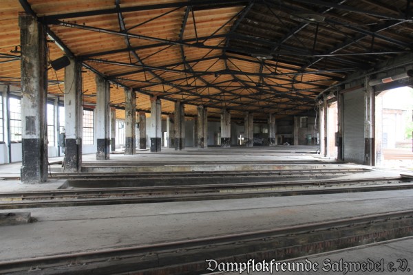 Etwas Wehmut schwang mit, als Burkhard Bohn am Sonnabendnachmittag durch die Halle des alten Lokschuppens schritt. "So sieht es also aus, wenn hier alles leer ist", sagte der Vorsitzende des Vereins der Salzwedeler Dampflokfreunde. So beiläufig dieser Satz auch fiel, markierte er doch das Ende einer 18-jährigen Vereinsarbeit der Dampflokfreunde in ihrem Quartier im ehemaligen Bahnbetriebswerk. Nach Jahren der Hoffnung auf Unterstützung der Stadt bei der Renovierung von Gelände und Gebäuden rund um den Lokschuppen ziehen die Vereinsmitglieder mitsamt ihrer historischen Lokomotiven und Waggons ins brandenburgische Wittenberge um.