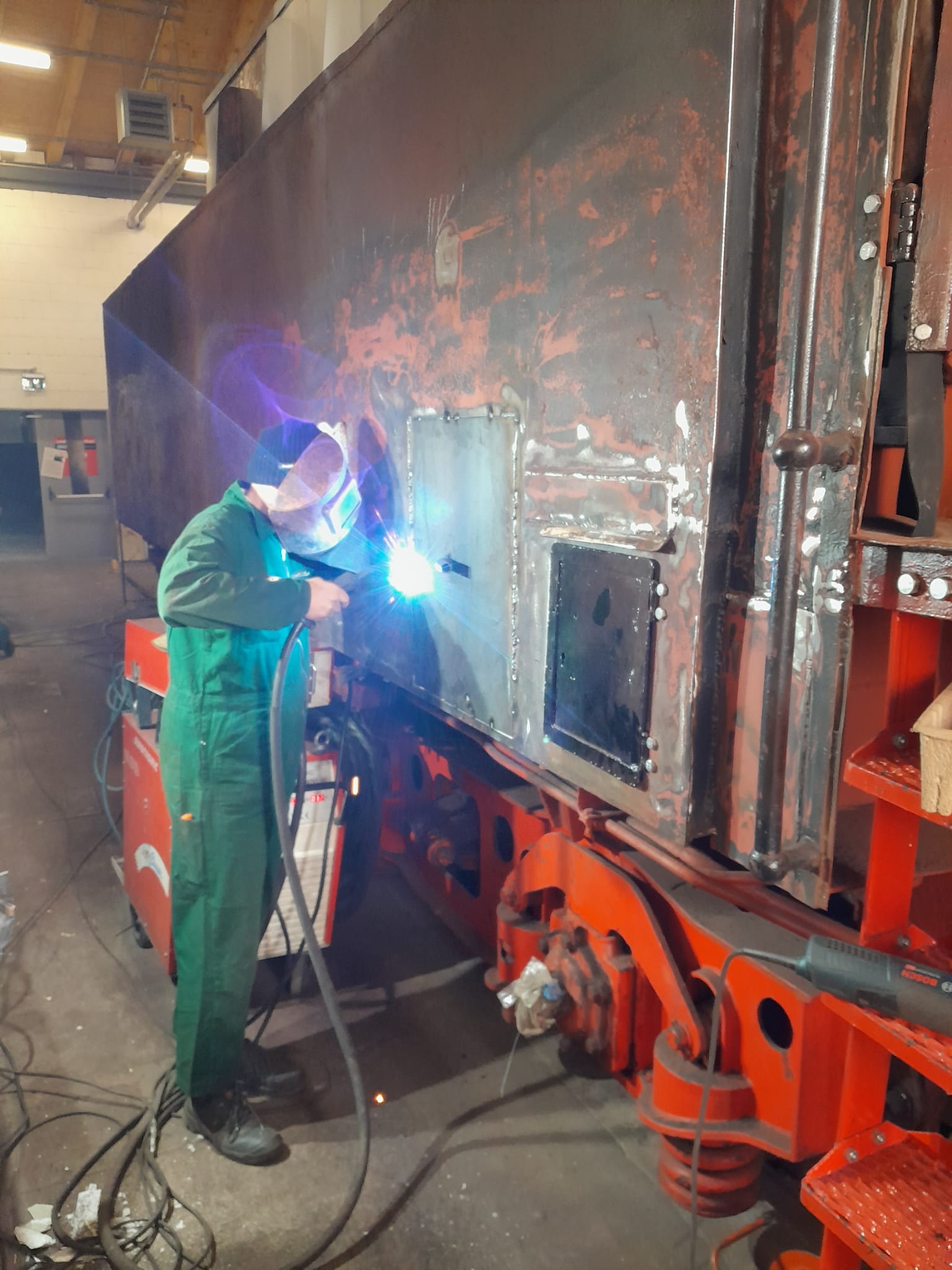 Damit sich der Kessel innen in einem optisch guten Zustand für den Prüfer präsentierte und dieser alles genau in Augenschein nehmen konnte, war eine Menge „Drecksarbeit“ notwendig. Dazu gehörte, durch das Mannloch in den Kessel zu steigen und die 1500 Stehbolzen, die durch festgebackene Asche und Staub verstopft waren, wieder freizubohren. Das kostete einen halben Tag, und die Arbeiten mussten unter Gehörschutz erfolgen, vom herumfliegenden Schmutz ganz zu schweigen.